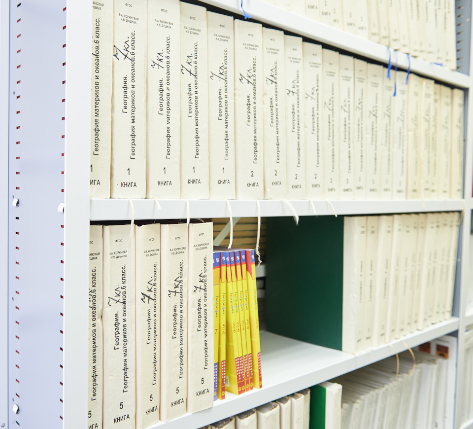 В закрытом фонде библиотеки школы используются передвижные стеллажи. Это позволяет удобно и быстро организовать хранение книг, учебных и методических материалов, а также облегчает доступ к ним.